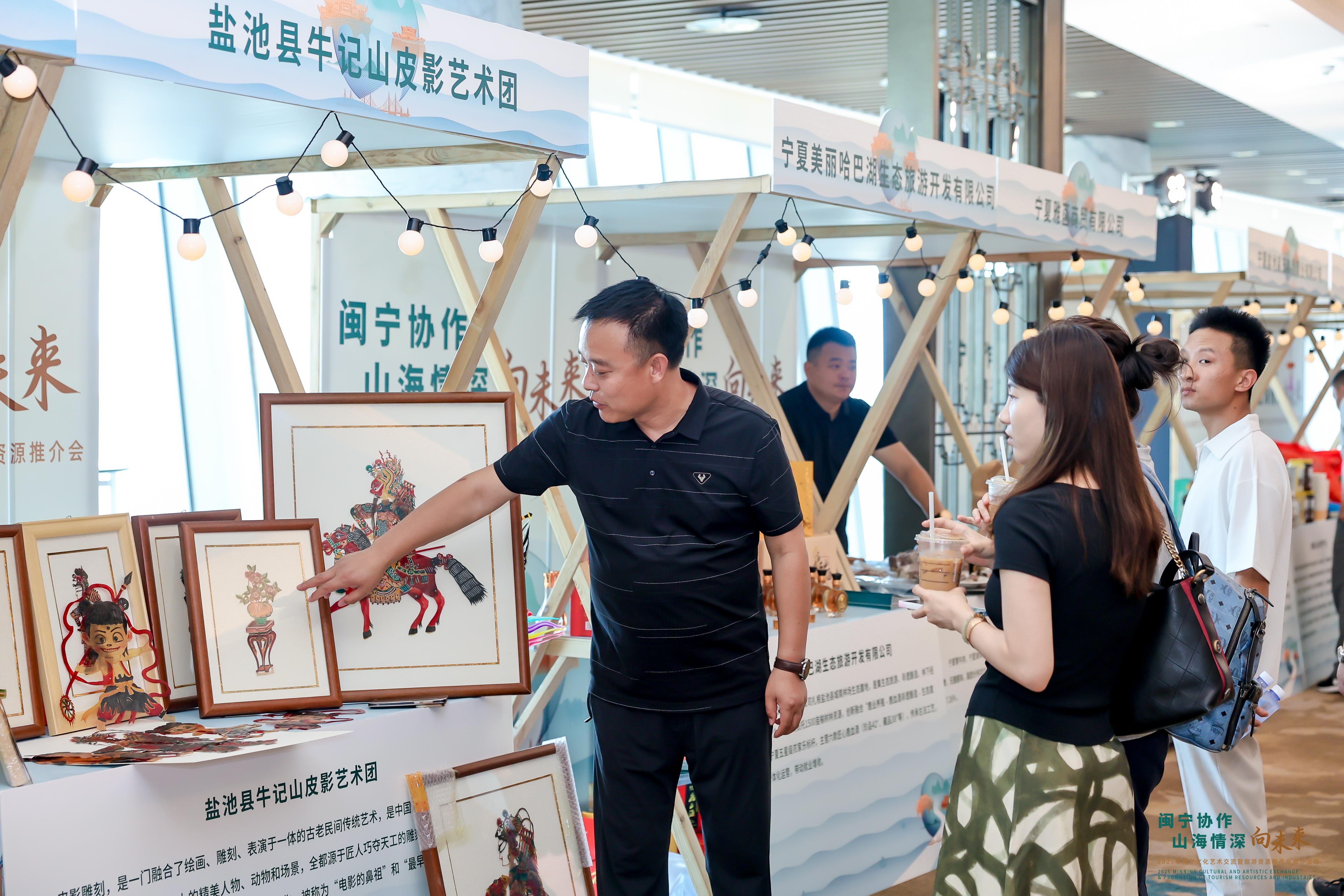 文藝展演精彩紛呈?!段业臑┭蚯椤贰堕L城隨想》等節(jié)目傳遞了濃郁的地方風(fēng)情,贏得陣陣掌聲。特色產(chǎn)品展區(qū)人氣尤旺,現(xiàn)燉現(xiàn)烤的灘羊肉吸引嘉賓紛紛品嘗。“鹽池灘羊毫無膻味、肉質(zhì)細(xì)膩,名不虛傳!”泉州山海情緣餐飲管理有限公司負(fù)責(zé)人楊成衛(wèi)贊不絕口,“我們已初步達(dá)成采購意向?!毖蚋卫贬u、蕎麥殼耳枕、手工刺繡等非遺和文創(chuàng)產(chǎn)品,也引來眾多咨詢與合作洽談。