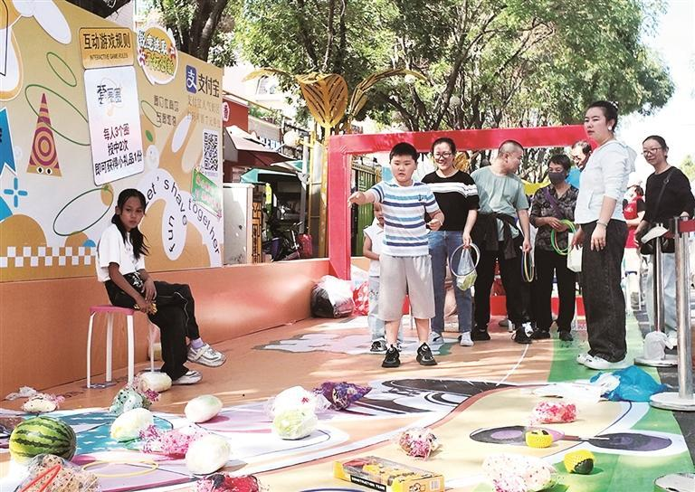 本屆鄰里節(jié)以“遇見你真好·奇遇敬德”為主題,將敬德街打造成沉浸式互動空間,設(shè)立非遺文化鑒賞、鄰里運動會、商圈美食展示體驗、鄰里文化公益宣傳、便民生活服務(wù)、助農(nóng)助企購物、兒童互動等七大板塊活動。在“老有意思了”老年人照片展示區(qū),一張張可愛、有趣、充滿歡樂的照片,講述著各族群眾一家親的生動故事?!皶r光里的鄰里”打卡區(qū)同樣熱鬧,大家紛紛在打卡板上寫下對美好生活的期待,一句句真摯的話語傳遞著對幸福生活的向往。傍晚時分,燈光亮起,“奇遇民謠演唱會”開演。舞臺上,歌手彈唱著融合多民族元素的民謠,臺下觀眾揮舞著熒光棒,跟著旋律輕聲合唱。歡呼聲與音樂聲此起彼伏,溫暖的氛圍點燃全場熱情。