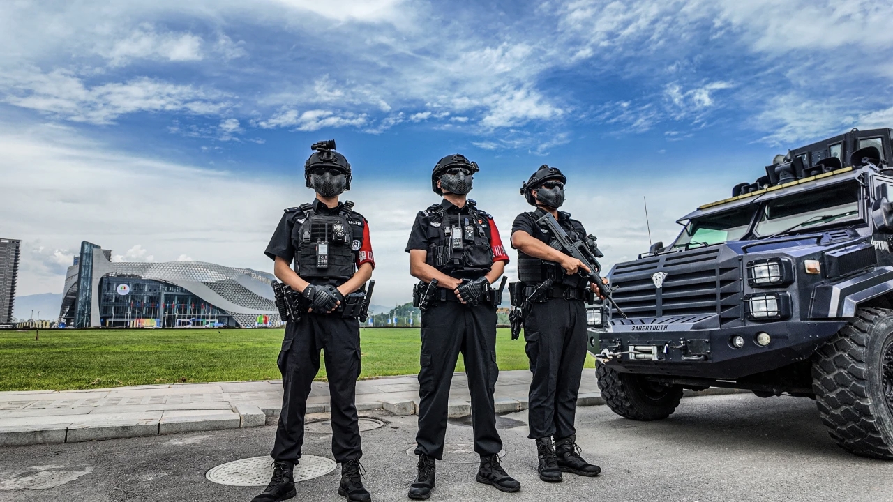 8月27日,清晨的第一縷陽光灑向銀川國際會展中心,野狼突擊隊隊員手持專業(yè)設(shè)備,對第七屆中國-阿拉伯國家博覽會的各個展館開展排爆安全檢查。盡管豆大的汗珠從他們的額頭、脖頸不斷滾下,警服早已被汗水浸透,但他們依舊全神貫注。展會開始后,他們綜合運用無人機和多型特種裝備輔助,引導國內(nèi)外來賓有序進入會場,為博覽會的順利舉辦織密防護網(wǎng)。