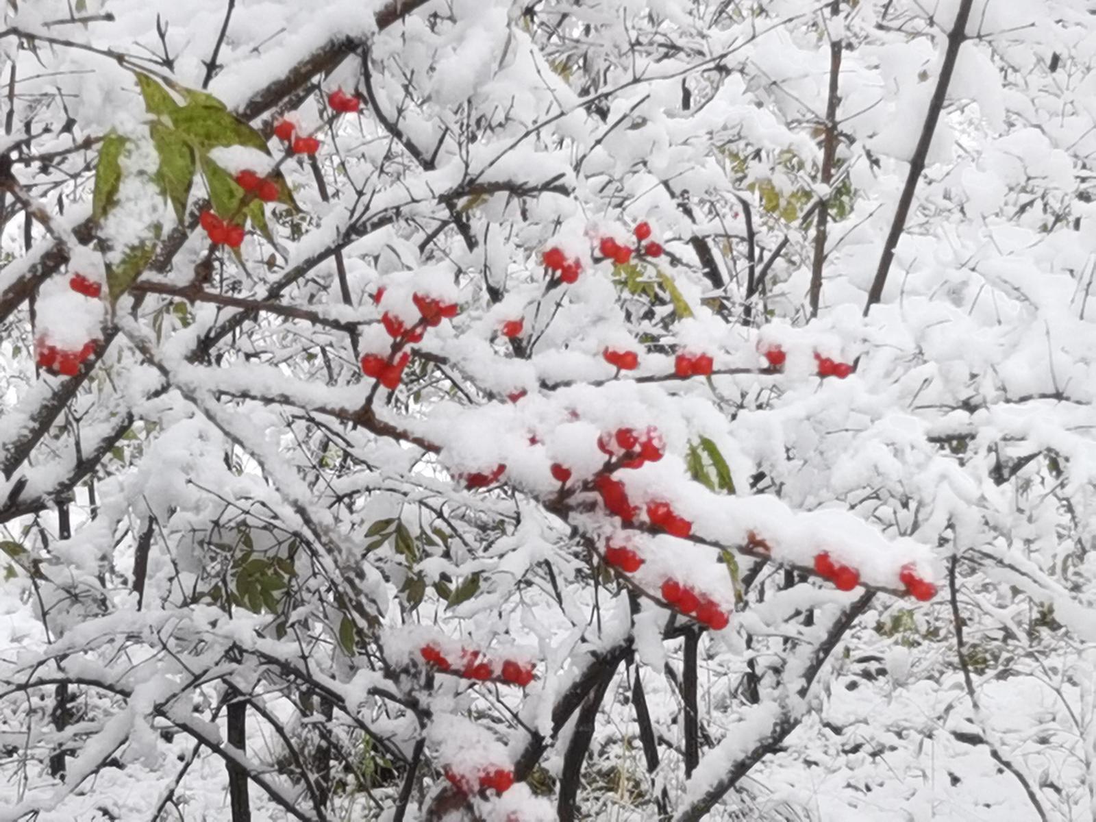 固原市一公園內(nèi),雪覆蓋在紅色植物上形成一道獨(dú)特的美景。 寧夏日報(bào)報(bào)業(yè)集團(tuán)全媒體記者 陳永峰 見習(xí)記者 楊愷 攝