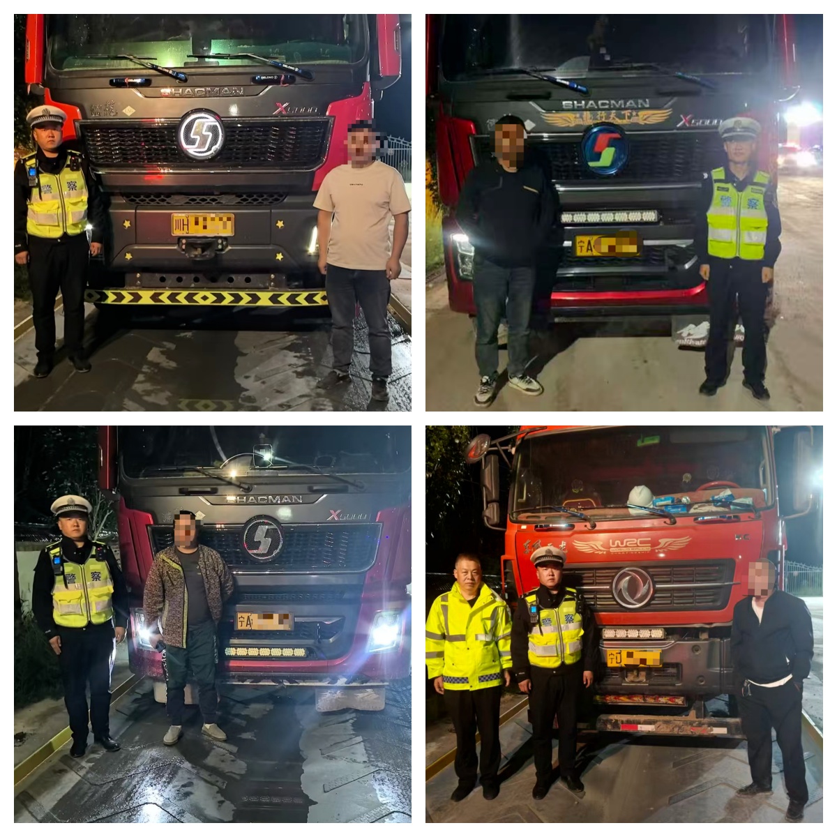 當日4時30分許,執(zhí)勤民警巡邏至轄區(qū)338國道路段處,發(fā)現(xiàn)連續(xù)4輛重型半掛牽引車行駛緩慢且車胎下沉,存在超載超限可能,于是示意靠邊停車,隨后將這4輛車引導(dǎo)至紅寺堡超限檢測站進行稱重檢測。經(jīng)檢測,駕駛員尤某駕駛的寧D7***9牌號車輛超載率高達201%;駕駛員王某某駕駛的川H3***0牌號車輛超載率高達207%;駕駛員蘇某駕駛的寧AR***6牌號車輛超載率高達200%;駕駛員蘇某駕駛的寧AR***8牌號車輛超載率高達229%。